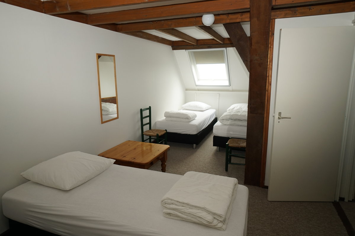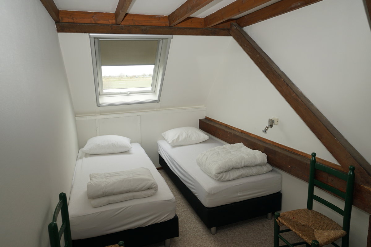 Im Obergeschoss befinden sich zwei Schlafzimmer, ein Schlafzimmer mit zwei Einzelbetten und ein Schlafzimmer mit vier Einzelbetten.