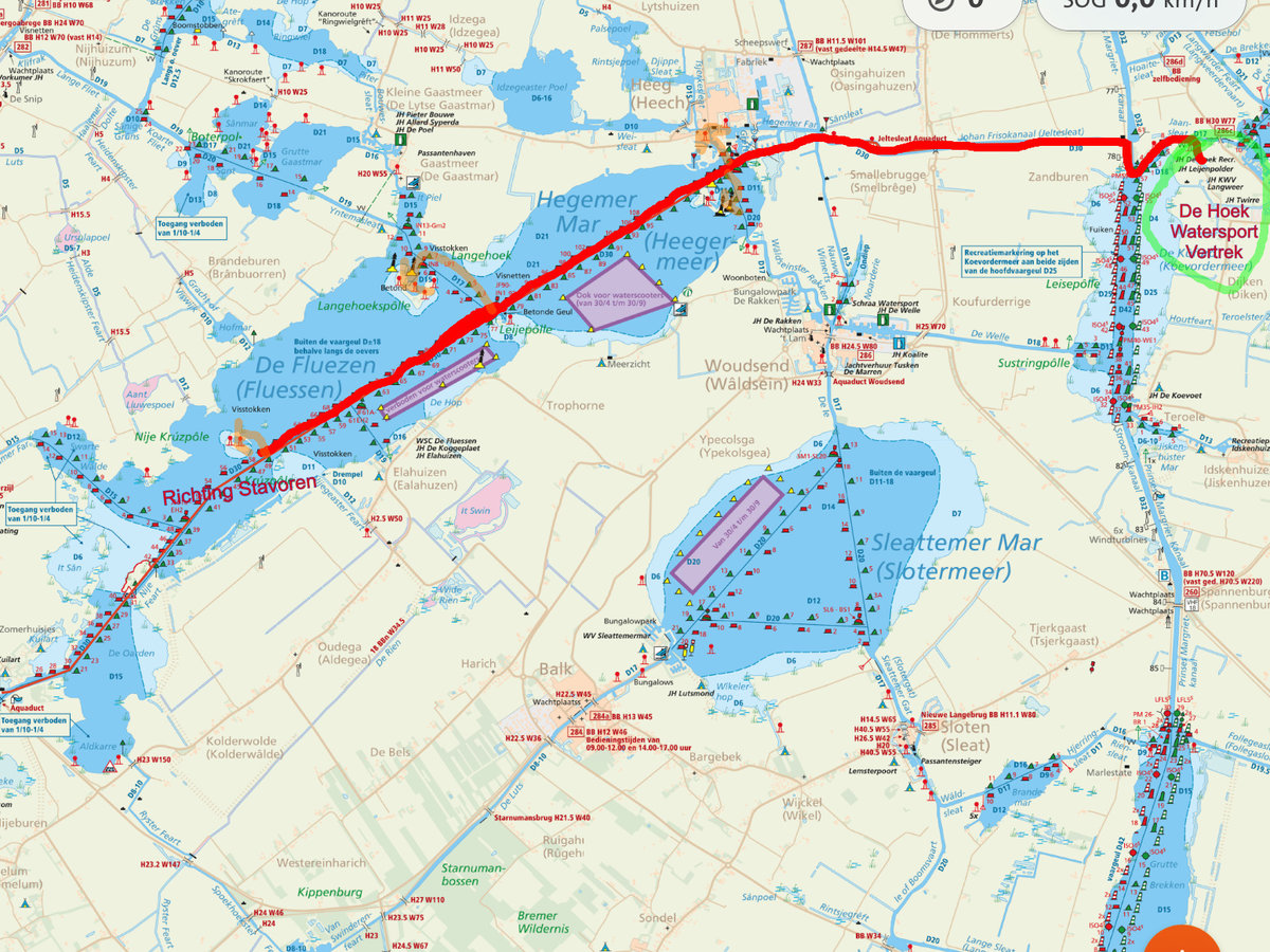 Übernachtungstipps mit einem Motorboot von De Hoek Watersport: Bitte achten Sie gut auf die Windrichtung, wenn Sie bei einer Insel anlegen wollen; wählen Sie vorzugsweise einen geschützten Platz im Binnenhafen. Wollen Sie ruhig schlafen, mit etwas mehr Wind aber ohne störenden Wellengang gegen Ihr Boot, dann raten wir Ihnen den natürlichen Binnenhafen von ‚De Rakkenpole‘ zu benutzen (gegenüber von Heeg) oder die Binnenhäfen von den mehr in der Mitte von de Fluezen liegenden Inseln ‚Nije Kruzpole‘ oder ‚Langehoeksepolle‘. Diese drei kleinen Inseln sind auch für Kinder ein herrliches Plätzchen, wo Sie grillen und spazieren gehen können. Und ... (bitte nicht weitererzählen!) – wir haben gehört, dass dort ab und zu auch mal ein Lagerfeuer angezündet wird.